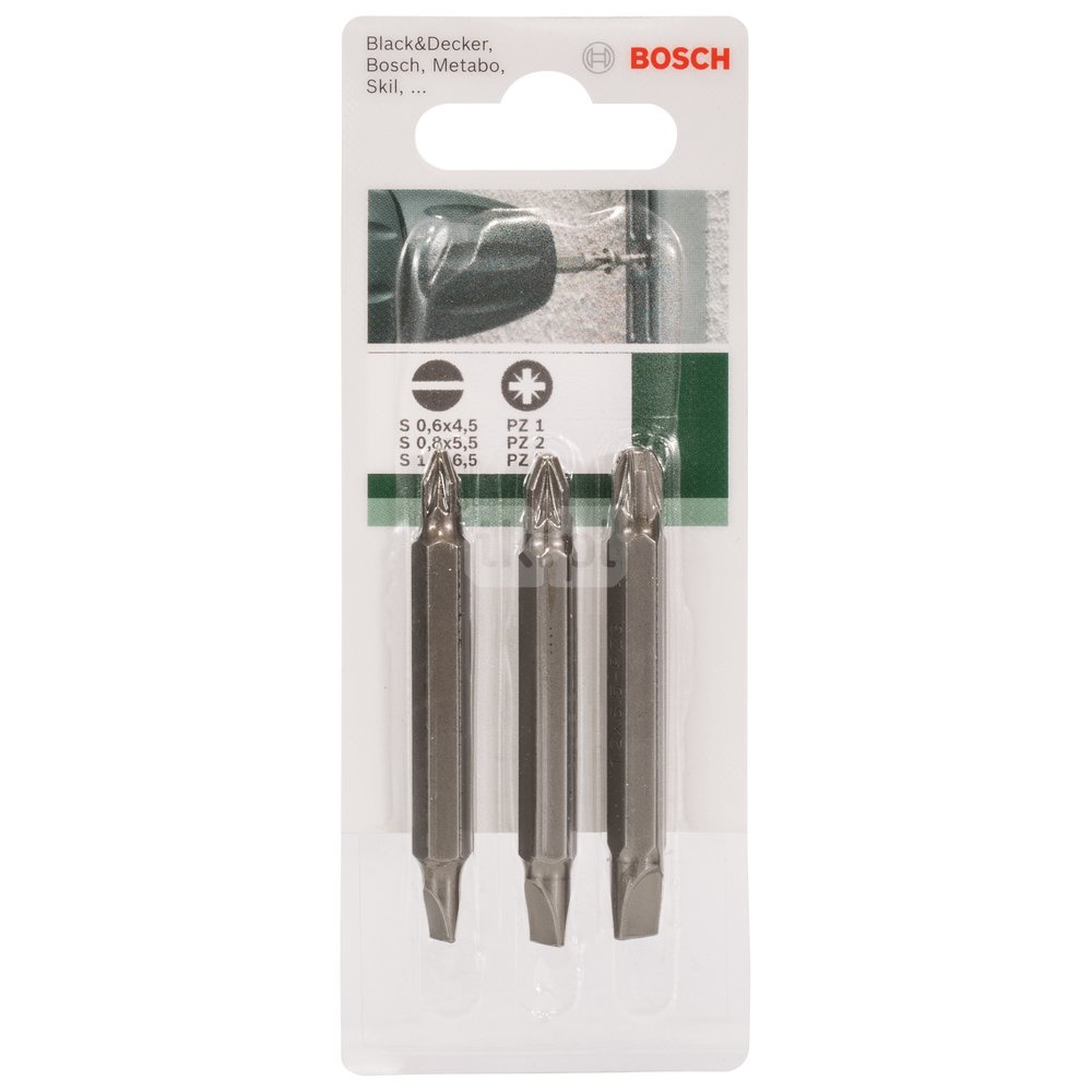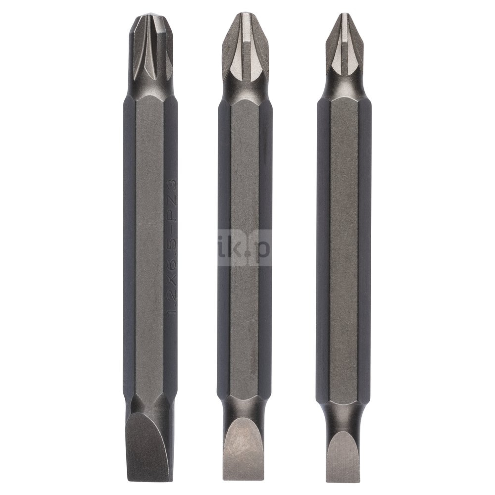 3-częściowy zestaw podwójnych końcówek wkręcających do śrub z rowkiem krzyżowym Pozidriv i do śrub rowkiem podłużnym (PZ, S) S0,
