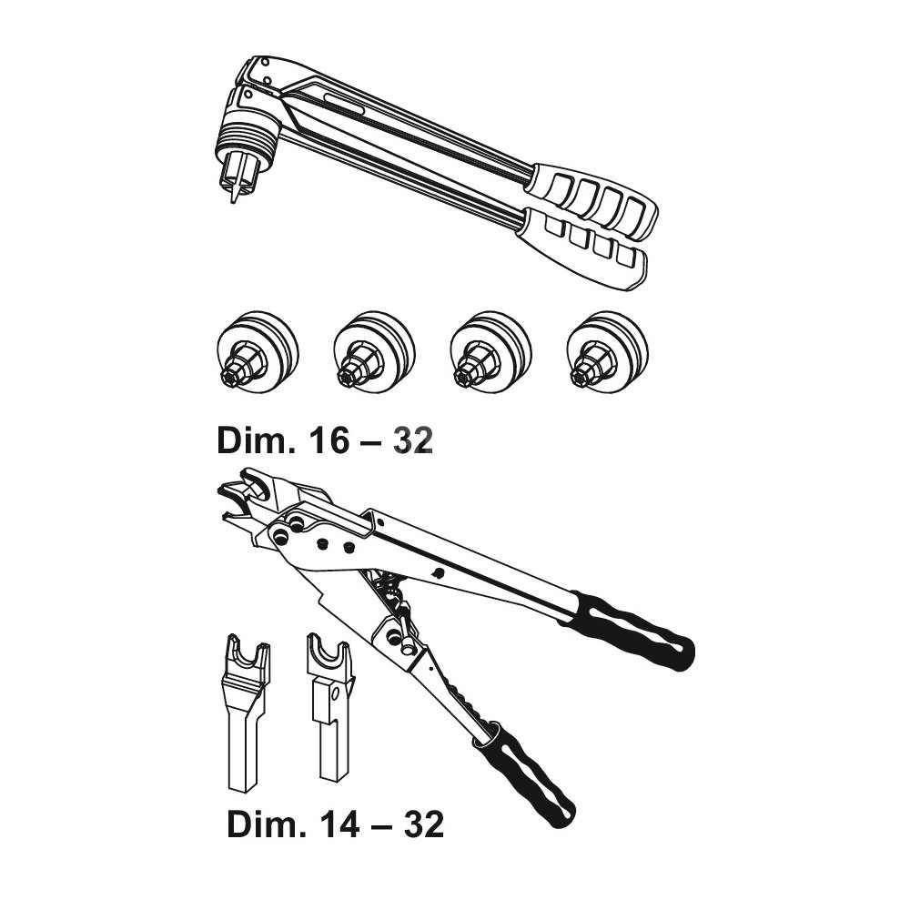 TECEflex - Komplet ręcznych narzędzi zaciskowych i kalibrujących TECEflex w zakresie średnic 16-32 mm