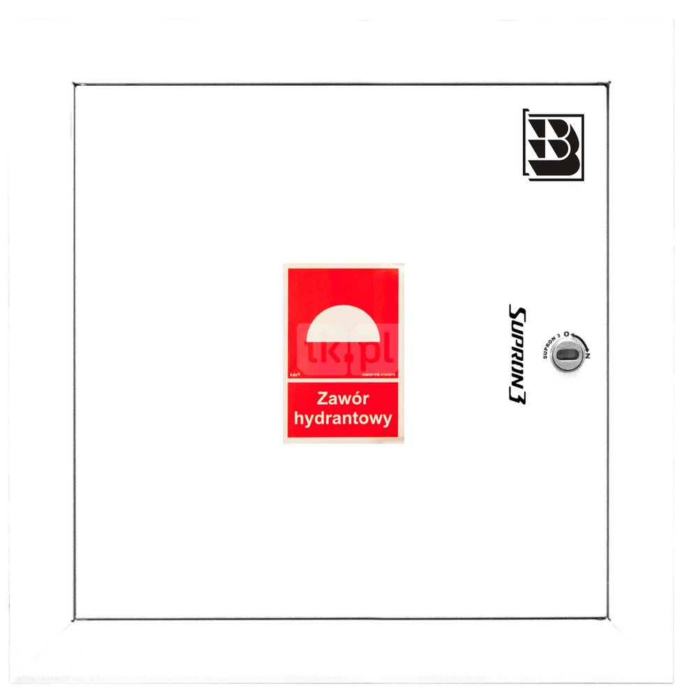 Dwa zawory hydrantowe typ ZH-52 wraz z obudową. Obudowa 550 wnękowa. Znak B, zamek OTS, kolor RAL9003