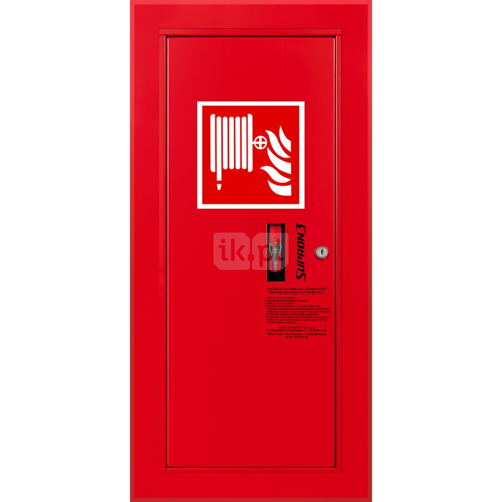 - szafka hydrantowa STANDARD wykonana z blachy czarnej malowanej farbą proszkową poliestrową fasadową typ Facade w kolorze czerwonym (RAL 3000) lub białym (RAL 9003), drzwi pełne; dzięki zastosowaniu zawiasu krytego drzwi szafki można otworzyć o 180°
