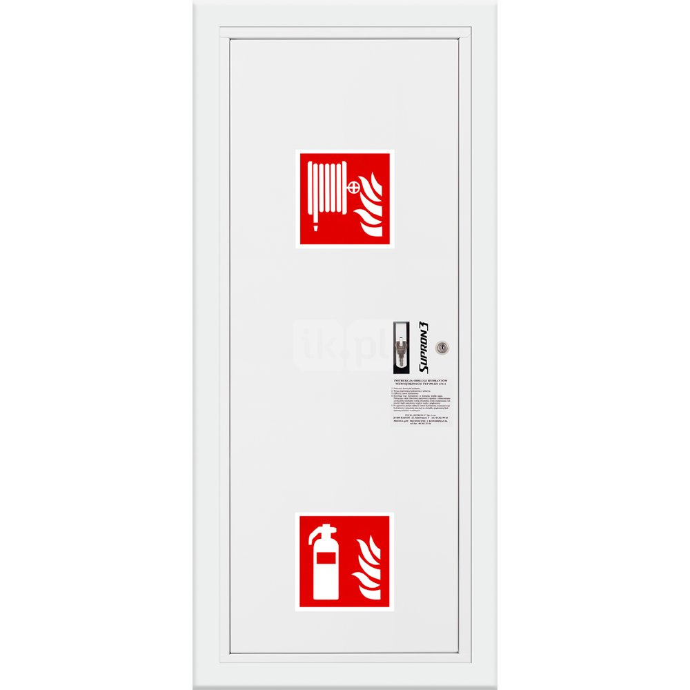 - szafka hydrantowa OCYNKOWANA wykonana z blachy stalowej ocynkowanej elektrolitycznie malowanej farbą proszkową poliestrową fasadową typu Facade w kolorze czerwonym (RAL 3000) lub białym (RAL 9003), drzwi pełne; dzięki zastosowaniu zawiasu krytego drzwi szafki można otworzyć o 180°