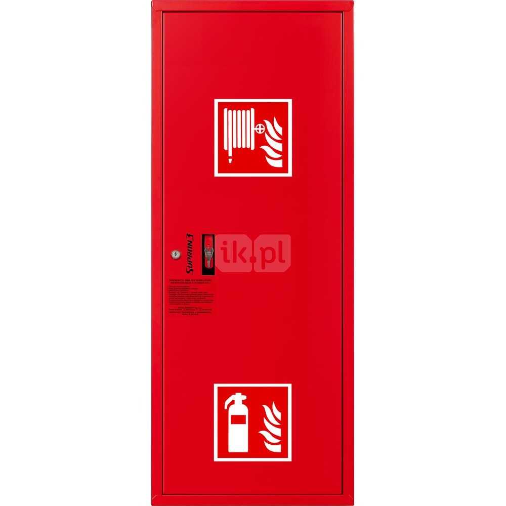 - szafka hydrantowa OCYNKOWANA wykonana z blachy stalowej ocynkowanej elektrolitycznie malowanej farbą proszkową poliestrową fasadową typu Facade w kolorze czerwonym (RAL 3000) lub białym (RAL 9003), drzwi pełne; dzięki zastosowaniu zawiasu krytego drzwi szafki można otworzyć o 180°