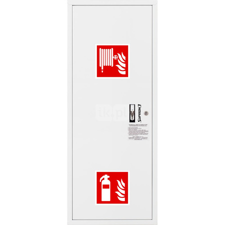 - szafka hydrantowa OCYNKOWANA wykonana z blachy stalowej ocynkowanej elektrolitycznie malowanej farbą proszkową poliestrową fasadową typu Facade w kolorze czerwonym (RAL 3000) lub białym (RAL 9003), drzwi pełne; dzięki zastosowaniu zawiasu krytego drzwi szafki można otworzyć o 180°
