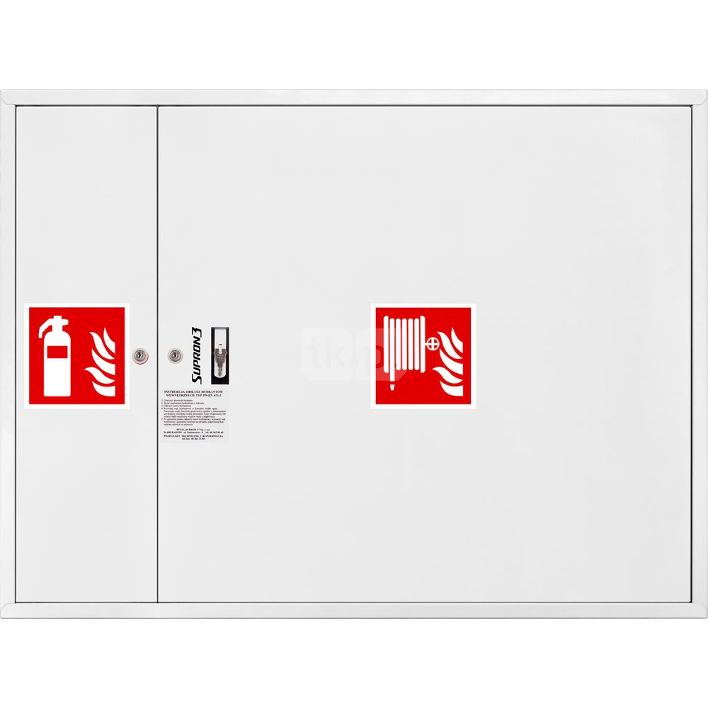 - szafka hydrantowa OCYNKOWANA wykonana z blachy stalowej ocynkowanej elektrolitycznie malowanej farbą proszkową poliestrową fasadową typu Facade w kolorze czerwonym (RAL 3000) lub białym (RAL 9003), drzwi pełne; dzięki zastosowaniu zawiasu krytego drzwi szafki można otworzyć o 180°