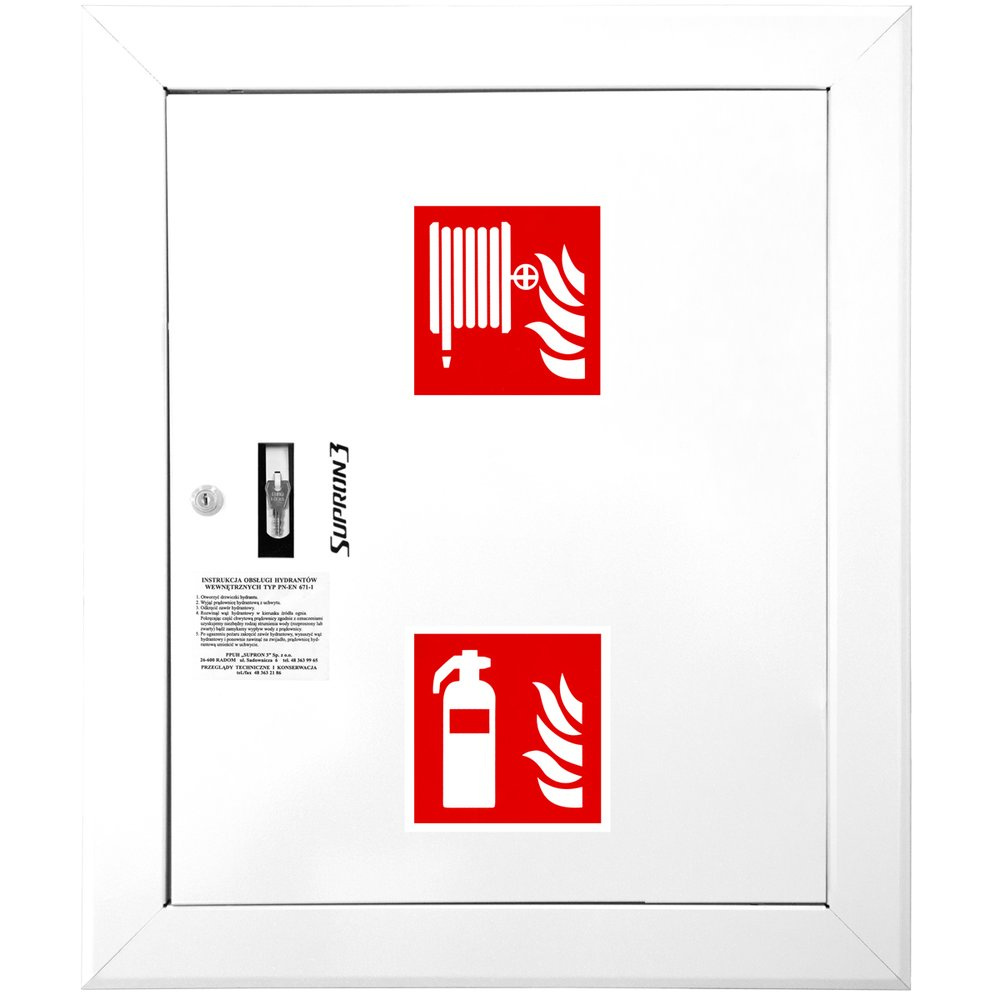 Hydrant DN52 wnękowy z koszem, 600x500x200mm, z miejscem na gaśnicę, wąż 15m, zamek patent, RAL 9003