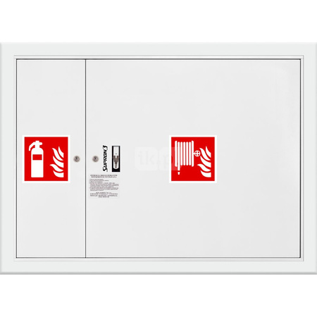 - szafka hydrantowa STANDARD wykonana z blachy czarnej malowanej farbą proszkową poliestrową fasadową typ Facade w kolorze czerwonym (RAL 3000) lub białym (RAL 9003), drzwi pełne; drzwi szafki można otworzyć o 180°