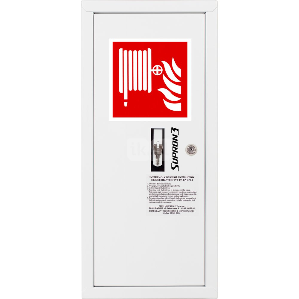 Hydrant DN52 zawieszany boczny z koszem, wąż 20m, zamek patent, RAL 9003 lewy