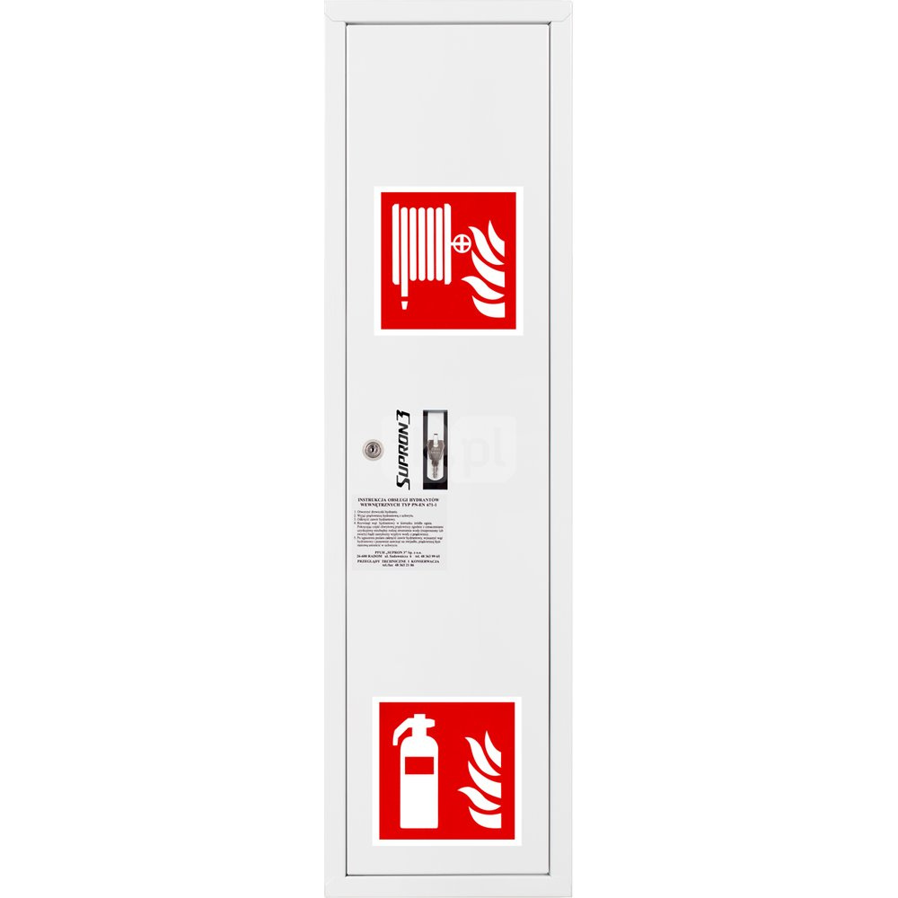 Hydrant DN52 zawieszany boczny ze zwijadłem, z miejscem na gaśnicę, wąż 20m, zamek patent, RAL 9003 prawy