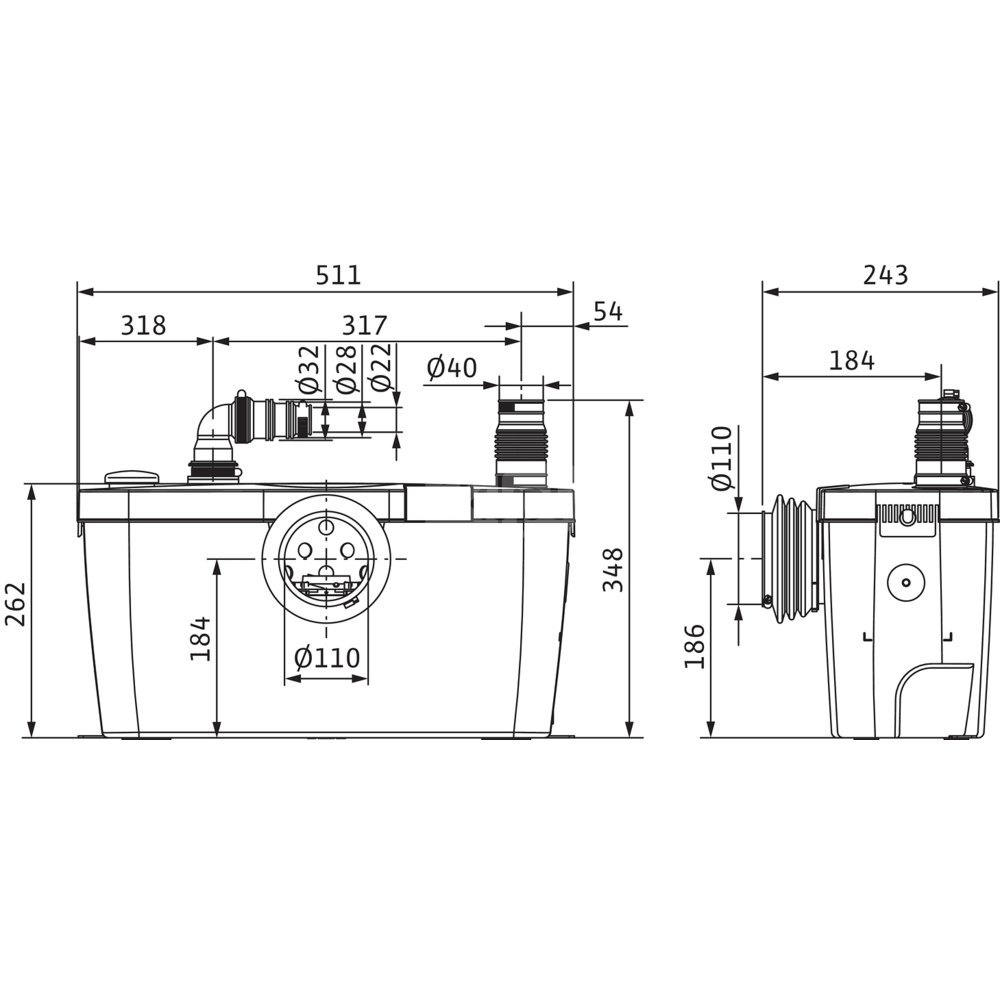 Podłączenie toalety stojącej oraz dodatkowa możliwość podłączenia (umywalka, bidet).