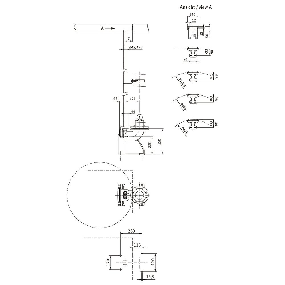 Dwie prowadnice (42,4x2 mm) zapewnia Użytkownik!