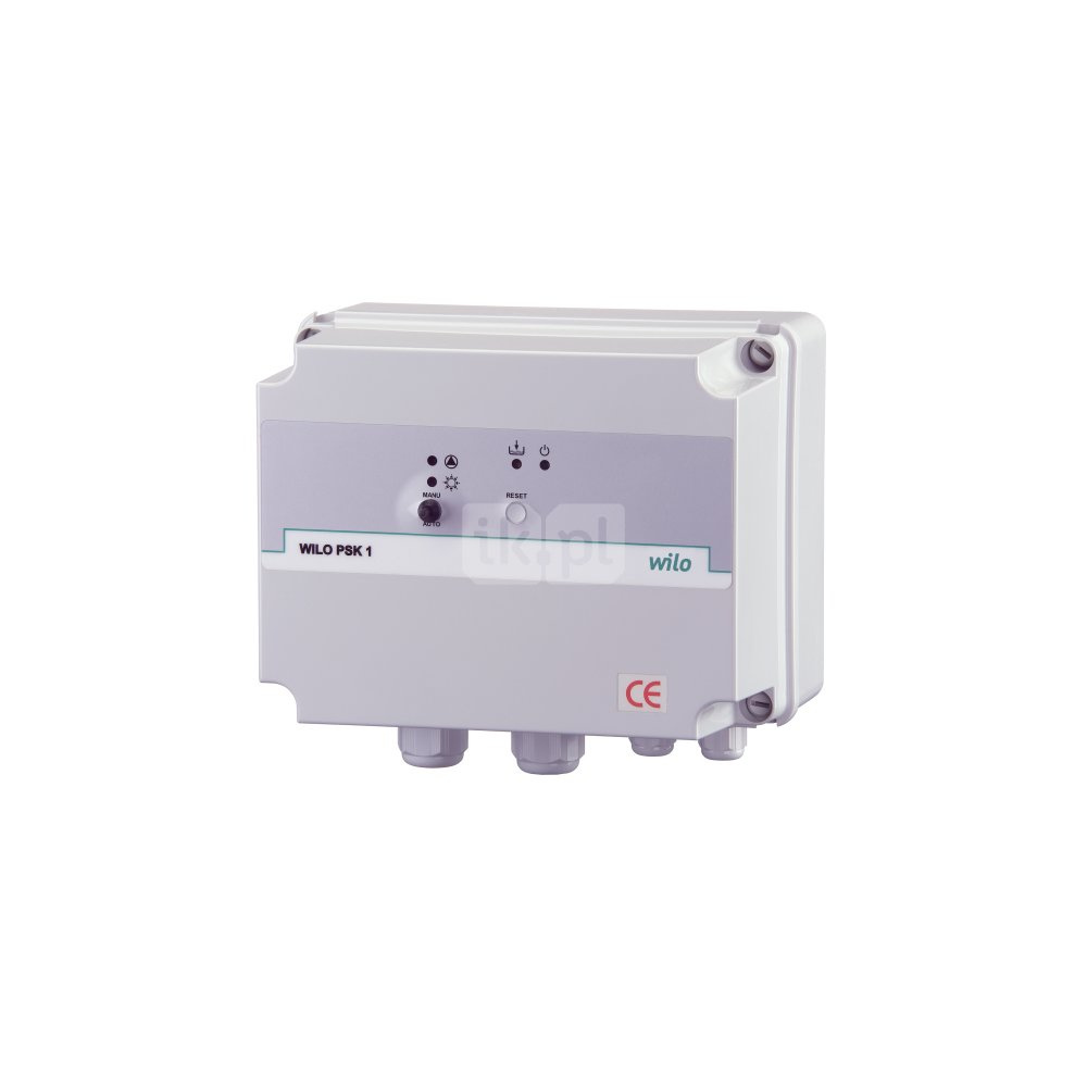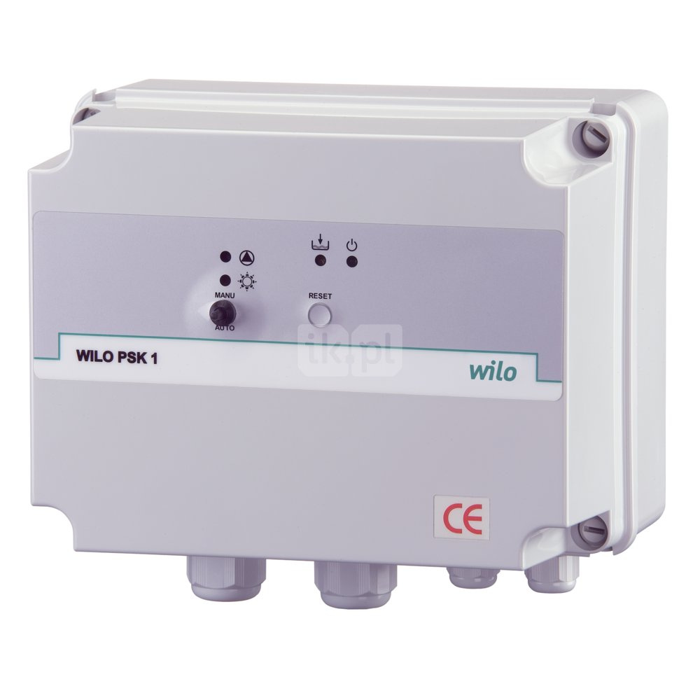 Akcesorium elektryczne do pomp (układ sterujący), WILO - Urządzenie sterujące PSK 1 (10-23A) do 1-pompy zaopatrującej w wodę ze studni lub zbiornika, z 2 elektrodami zanurzeniowymi. Ze wskaźnikiem braku wody, świetlną sygnalizacją awarii i pracy oraz zabe