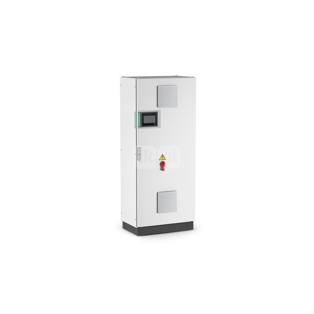 Całkowicie elektroniczny regulator Comfort-Controller (CC) w obudowie z blachy stalowej (kolor: szary beżowy), całkowicie okablowany. Urządzenie sterujące przeznaczone do podłączenia do sieci prądu trójfazowego 3/PE 400V/50 Hz wg IEC 60038 (inne napięcia na zapytanie), złożony z wewnętrznego układu zasilania, CPU, baterii buforowej, modułów analogowych/cyfrowych, zasilacza z bezpiecznikami, stycznikami i urządzeniami ochronnymi silnika oraz przetwornicą częstotliwości i filtrem sinusowym.