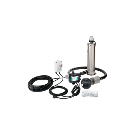 W komplecie z 20-metrowym kablem zasilającym, skrzynką łączeniową (IP55) z termicznym zabezpieczeniem silnika, włącznikiem/wyłącznikiem oraz 2-metrowym kablem zasilającym z wtyczką z uziemieniem.