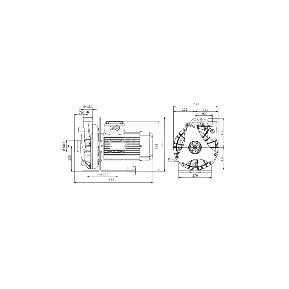 *Przyłącze gwintowane po stronie ssawnej: Ø 60,3