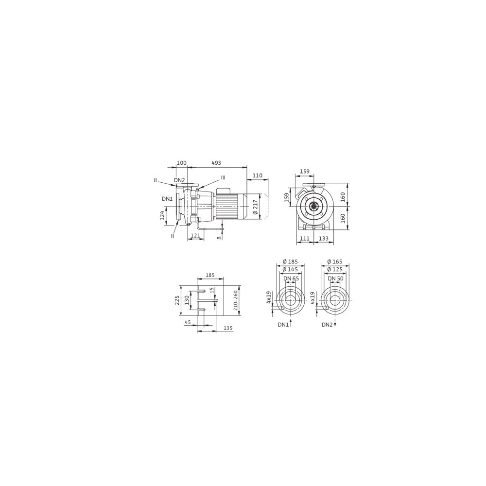 W wersji standardowej silniki w klasie IE3. Pompy z silnikami ≥ 5,5 kW są seryjnie wyposażone w czujniki termistorowe jako zabezpieczenie silnika.
