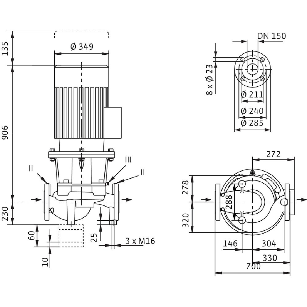 *Przyłącze gwintowane po stronie ssawnej: DN 150