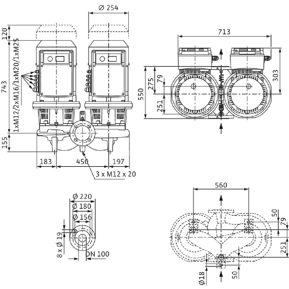 Dławnicowa pompa podwójna o konstrukcji Inline do montażu na rurociągu lub do ustawienia na fundamencie z wbudowaną przetwornicą częstotliwości do regulacji elektronicznej m.in. wg stałej i zmiennej różnicy ciśnień (Δp-c/Δp-v)