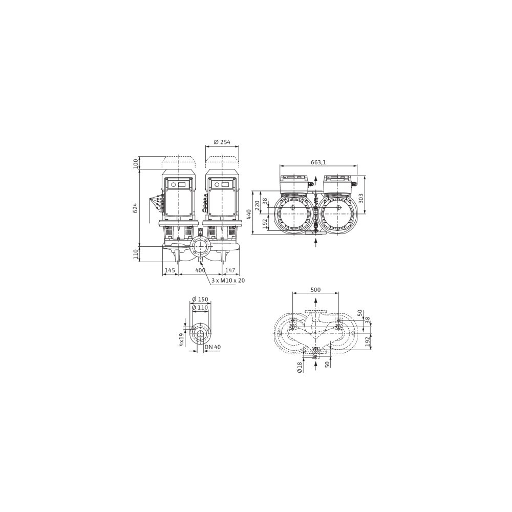 *Przyłącze gwintowane po stronie tłocznej: DN 40