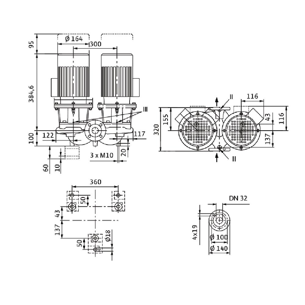 *Przyłącze gwintowane po stronie ssawnej: DN 32