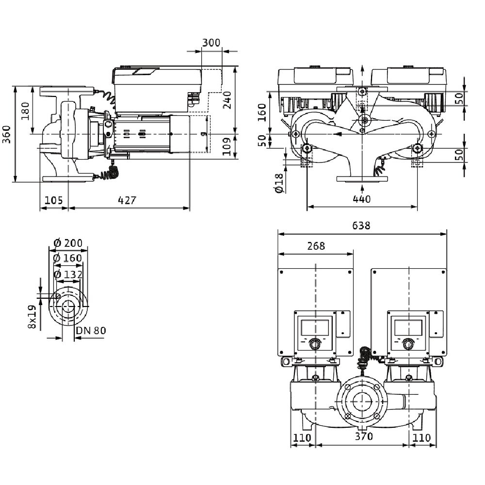 Pompa obiegowa WILO Stratos GIGA 2.0-D typu in-line z silnikiem znormalizowanym 50/60 Hz 2840obr/min