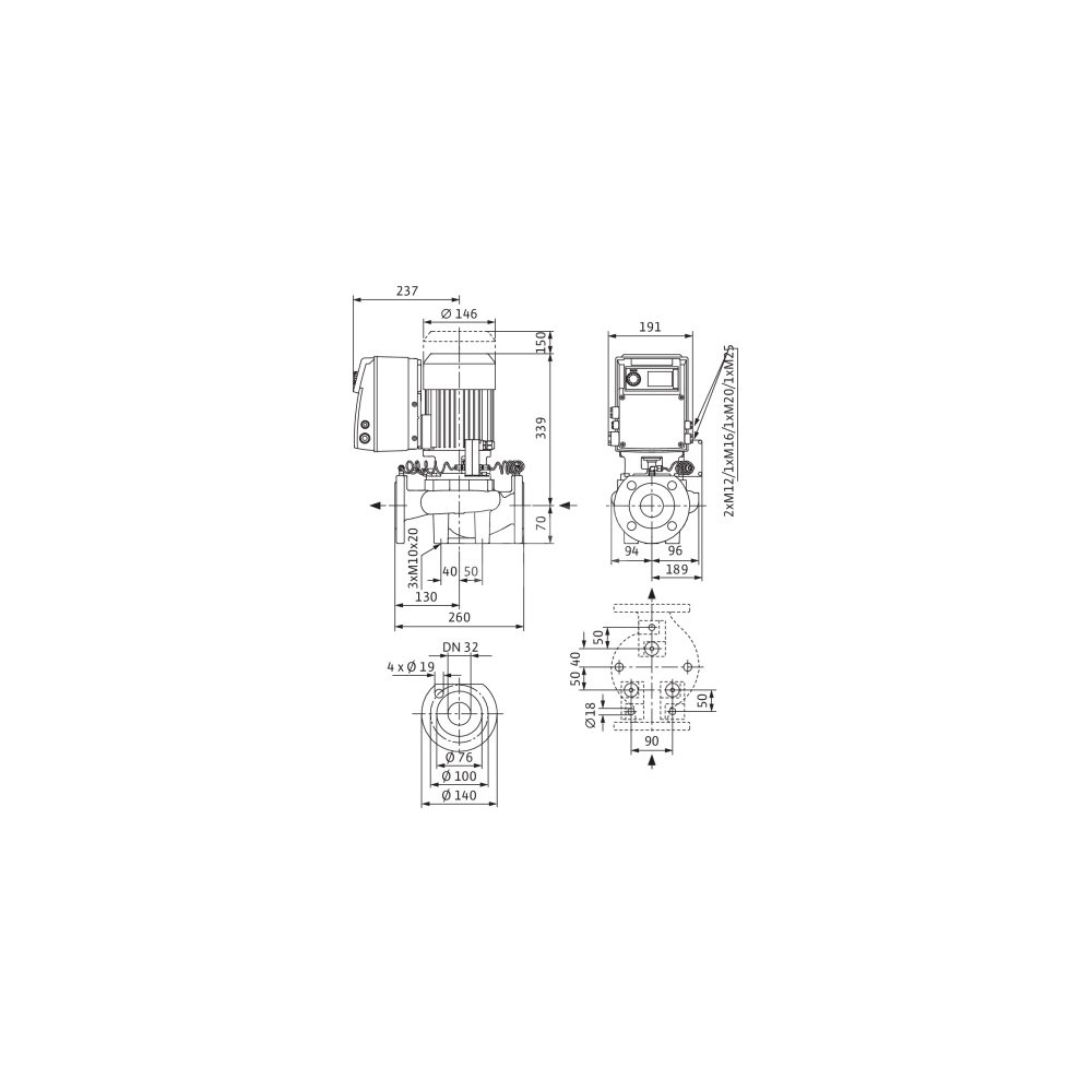 *Interfejsy: Wejście sterujące „Wyłączanie z priorytetem”, „Zewnętrzna zamiana pomp” (działa tylko w trybie dwupompowym), wejście analogowe 0-10 V, 2-10 V, 0-20 mA, 4-20 mA dla trybu sterowania (DDC) lub do zdalnej regulacji wartości zadanej, wejście analogowe 0-10 V, 2-10 V, 0-20 mA, 4-20 mA dla sygnału wartości rzeczywistej czujnika ciśnienia, złącze na podczerwień do komunikacji bezprzewodowej za pomocą urządzenia do obsługi i serwisu Wilo-IR-Stick/IR-Monitor, gniazdo do IF-Modułów Wilo Modbus, BACnet, CAN, PLR, LON do podłączenia do automatyki budynku, konfigurowana, bezpotencjałowa sygnalizacja awarii i pracy/stanu gotowości, interfejs do komunikacji między pompami podwójnymi