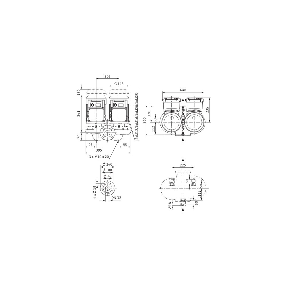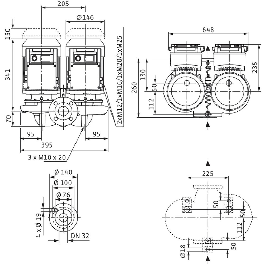*Interfejsy: Wejście sterujące „Wyłączanie z priorytetem”, „Zewnętrzna zamiana pomp” (działa tylko w trybie dwupompowym), wejście analogowe 0-10 V, 2-10 V, 0-20 mA, 4-20 mA dla trybu sterowania (DDC) lub do zdalnej regulacji wartości zadanej, wejście analogowe 0-10 V, 2-10 V, 0-20 mA, 4-20 mA dla sygnału wartości rzeczywistej czujnika ciśnienia, złącze na podczerwień do komunikacji bezprzewodowej za pomocą urządzenia do obsługi i serwisu Wilo-IR-Stick/IR-Monitor, gniazdo do IF-Modułów Wilo Modbus, BACnet, CAN, PLR, LON do podłączenia do automatyki budynku, konfigurowana, bezpotencjałowa sygnalizacja awarii i pracy/stanu gotowości, interfejs do komunikacji między pompami podwójnymi