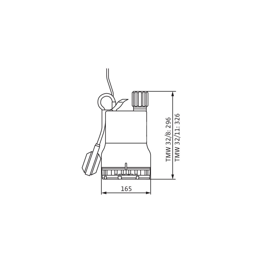 Całkowicie zanurzona pompa zatapialna do wody zanieczyszczonej, do przenośnego ustawienia mokrego, do tłoczenia ścieków bez fekaliów lub wody zanieczyszczonej. Korpus hydrauliczny i wirnik z tworzywa sztucznego, korpus silnika ze stali nierdzewnej. Hydraulika ze zintegrowanym urządzeniem zawirowującym, pionowym przyłączem gwintowanym ze zintegrowanym zabezpieczeniem przed przepływem zwrotnym i otwartym wirnikiem wielołopatkowym. Silnik na prąd zmienny z chłodzeniem płaszczowym (do chłodzenia wykorzystywane jest przetłaczane medium między korpusem pompy i silnika), zintegrowanym kondensatorem roboczym i termiczną kontrolą silnika przed przeciążeniem z automatycznym ponownym włączeniem. Kabel zasilający o długości z zamontowaną wtyczką z uziemieniem i wyłącznikiem pływakowym do automatycznego sterowania poziomem. Do uszczelnienia po stronie medium służy uszczelnienie mechaniczne, natomiast po stronie silnika pierścień uszczelniający wału.
