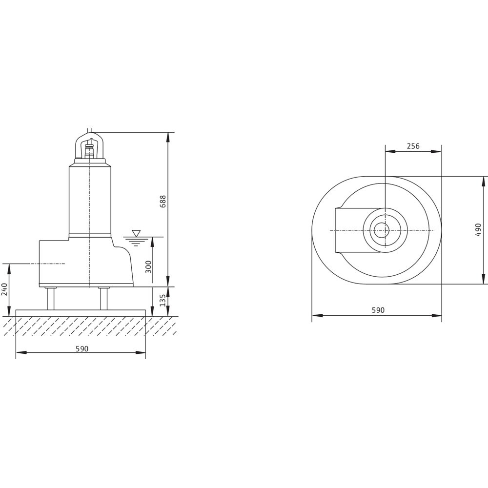 Całkowicie zanurzona pompa zatapialna do ścieków, pionowe ustawienie mokre, do tłoczenia wody zanieczyszczonej, zawierającej fekalia. Korpus hydrauliczny i wirnik z tworzywa sztucznego, korpus silnika ze stali nierdzewnej, uszczelnienie po stronie pompy z SiC/SiC. Przyłącze tłoczne z poziomym przyłączem ciśnieniowym i przyłączem kołnierzowym. Silnik chłodzony powierzchniowo w wersji na prąd trójfazowy z termiczną kontrolą silnika, uszczelnieniem komory i certyfikatem Ex. Kabel zasilający, wodoszczelny na całej długości, z wolną końcówką.