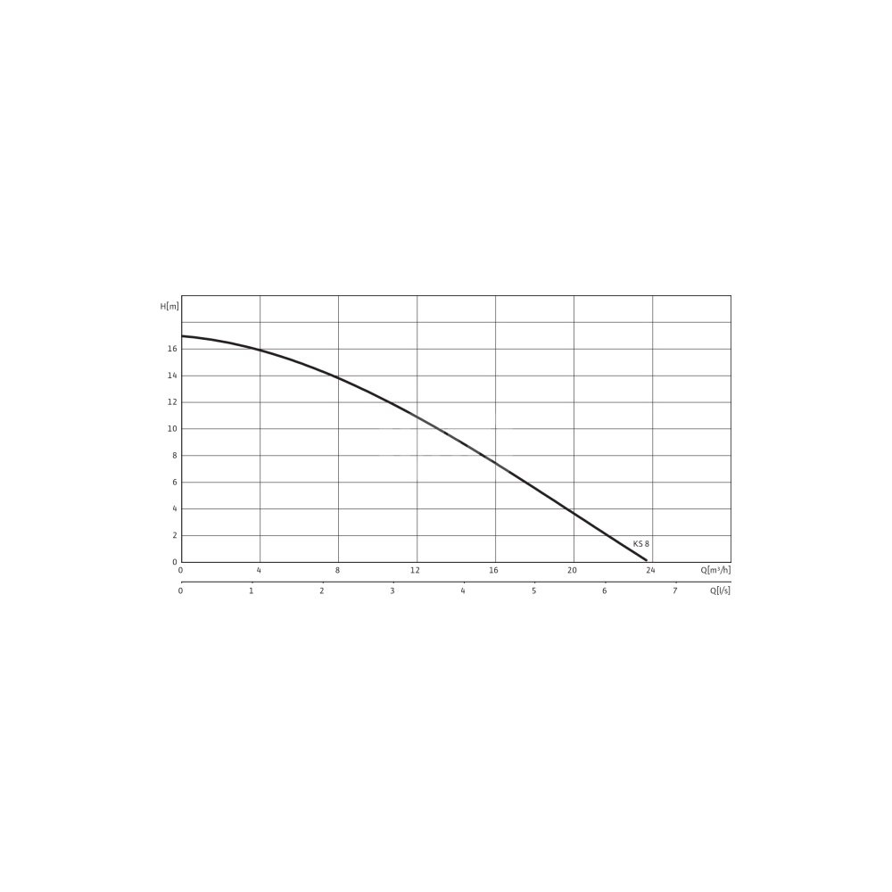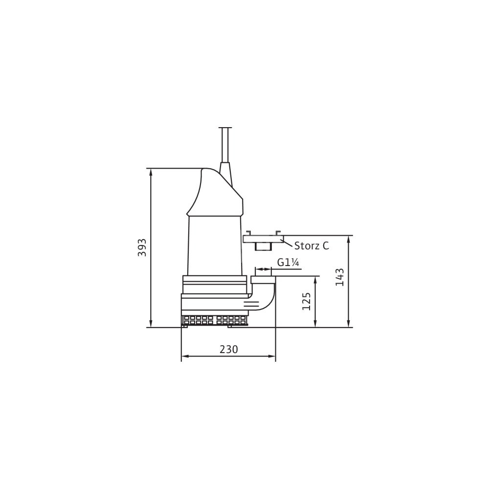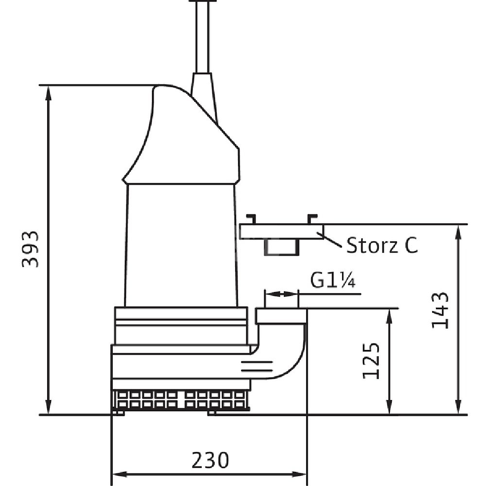 Całkowicie zanurzona pompa zatapialna do wody zanieczyszczonej, pionowe ustawienie mokre, do tłoczenia wody zanieczyszczonej i zawierającej piasek Korpus hydrauliczny i wirnik z żeliwa szarego, korpus silnika z aluminium. Przyłącze tłoczne z pionowym odpływem ciśnieniowym i złączem typu Storz. Samochłodzący silnik w wersji na prąd trójfazowy, z odłączanym kablem zasilającym z wyłącznikiem pływakowym i wtyczką wg standardu CEE z funkcją zamiany faz. Do uszczelnienia po stronie medium i silnika służy uszczelnienie mechaniczne. Agregat można stosować w podsysającym trybie pracy bez ograniczeń.