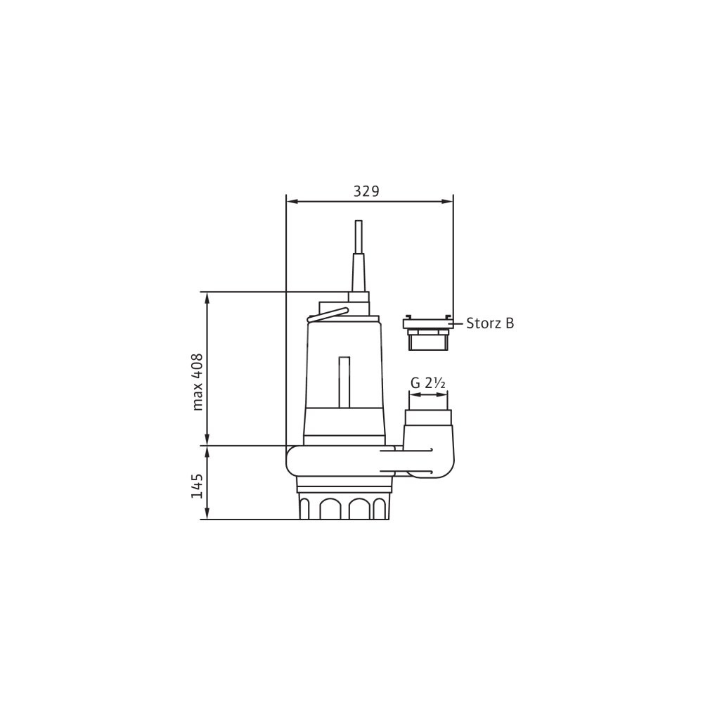 Całkowicie zanurzona pompa zatapialna do wody zanieczyszczonej, pionowe ustawienie mokre, do tłoczenia wody zanieczyszczonej i zawierającej piasek Korpus hydrauliczny i wirnik z żeliwa szarego, korpus silnika z aluminium. Przyłącze tłoczne z pionowym odpływem ciśnieniowym i złączem typu Storz. Samochłodzący silnik w wersji na prąd trójfazowy, z odłączanym kablem zasilającym z wyłącznikiem pływakowym i wtyczką wg standardu CEE z funkcją zamiany faz. Do uszczelnienia po stronie medium i silnika służy uszczelnienie mechaniczne. Agregat można stosować w podsysającym trybie pracy bez ograniczeń.