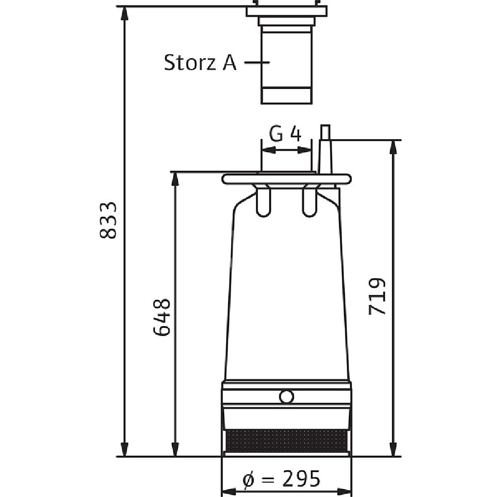 Całkowicie zanurzona pompa zatapialna do wody zanieczyszczonej, pionowe ustawienie mokre, do tłoczenia wody zanieczyszczonej i zawierającej piasek Korpus hydrauliczny i wirnik z żeliwa szarego, korpus silnika z aluminium. Przyłącze tłoczne z centrycznym i pionowym odpływem ciśnieniowym i złączem typu Storz. Silnik chłodzony powierzchniowo w wersji na prąd trójfazowy z chłodzeniem płaszczowym i komorą uszczelnienia. Rozłączny kabel zasilający z wtyczką wg standardu CEE z funkcją zamiany faz. Uszczelnienie zapewniają dwa niezależne od kierunku obrotów uszczelnienia mechaniczne. Agregat można stosować w podsysającym trybie pracy bez ograniczeń.