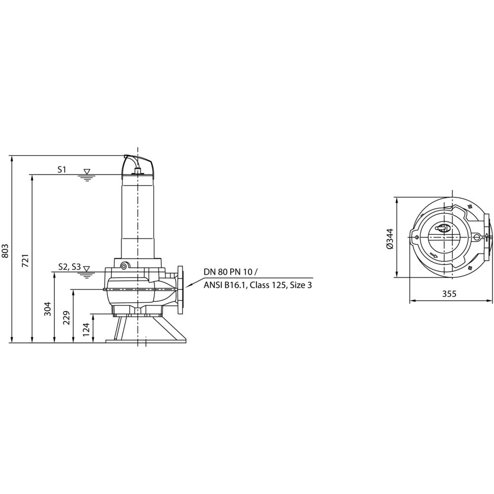 Całkowicie zanurzona pompa zatapialna do ścieków, do stacjonarnego i przenośnego ustawienia mokrego, do tłoczenia wody zanieczyszczonej i ścieków zawierających fekalia (w zakresie obowiązywania normy EN 12050-1). Korpus hydrauliczny i wirnik z żeliwa szarego, korpus silnika ze stali nierdzewnej. Uszczelnienie po stronie medium i po stronie silnika zapewniają dwa uszczelnienia mechaniczne niezależne od kierunku obrotów. Silnik chłodzony powierzchniowo w wersji na prąd trójfazowy z uszczelnieniem komory i termiczną kontrolą silnika. Rozłączny kabel zasilający z wtyczką wg standardu CEE z funkcją zamiany faz i wyłącznikiem pływakowym.