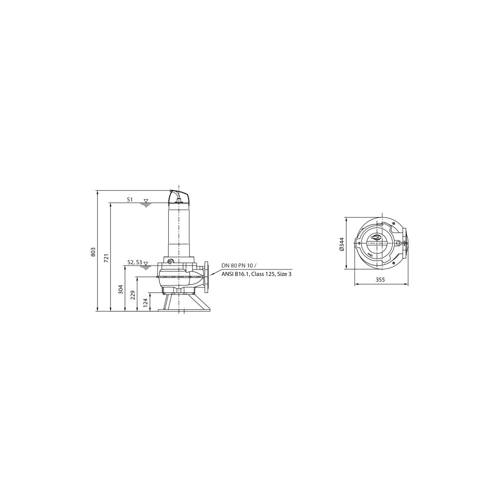 Całkowicie zanurzona pompa zatapialna do ścieków, do stacjonarnego i przenośnego ustawienia mokrego, do tłoczenia wody zanieczyszczonej i ścieków zawierających fekalia (w zakresie obowiązywania normy EN 12050-1). Korpus hydrauliczny i wirnik z żeliwa szarego, korpus silnika ze stali nierdzewnej. Uszczelnienie po stronie medium i po stronie silnika zapewniają dwa uszczelnienia mechaniczne niezależne od kierunku obrotów. Silnik chłodzony powierzchniowo w wersji na prąd trójfazowy z uszczelnieniem komory i termiczną kontrolą silnika. Rozłączny kabel zasilający z wolną końcówka kabla.