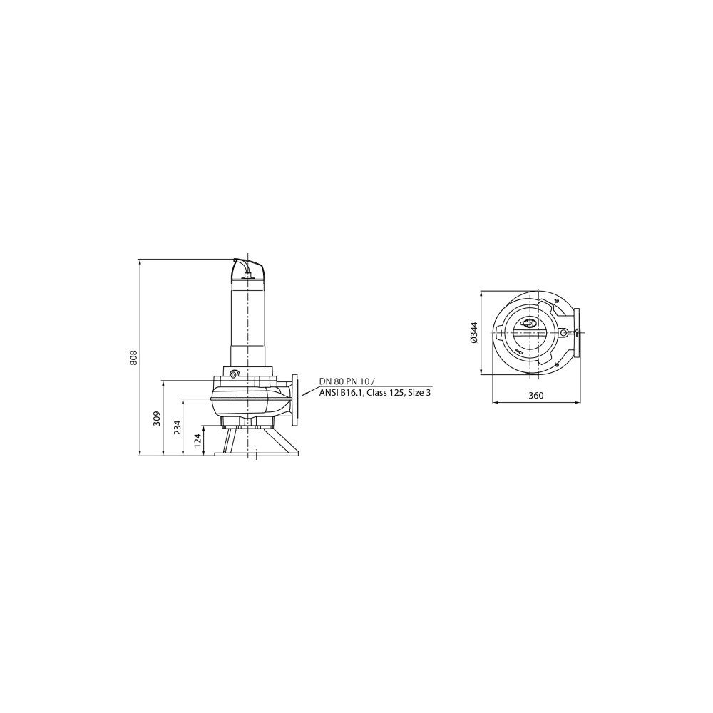 Całkowicie zanurzona pompa zatapialna do ścieków, do stacjonarnego i przenośnego ustawienia mokrego, do tłoczenia wody zanieczyszczonej i ścieków zawierających fekalia (w zakresie obowiązywania normy EN 12050-1). Korpus hydrauliczny i wirnik z żeliwa szarego, korpus silnika ze stali nierdzewnej. Uszczelnienie po stronie medium i po stronie silnika zapewniają dwa uszczelnienia mechaniczne niezależne od kierunku obrotów. Silnik chłodzony powierzchniowo w wersji na prąd trójfazowy z uszczelnieniem komory i termiczną kontrolą silnika. Rozłączny kabel zasilający z wolną końcówka kabla.