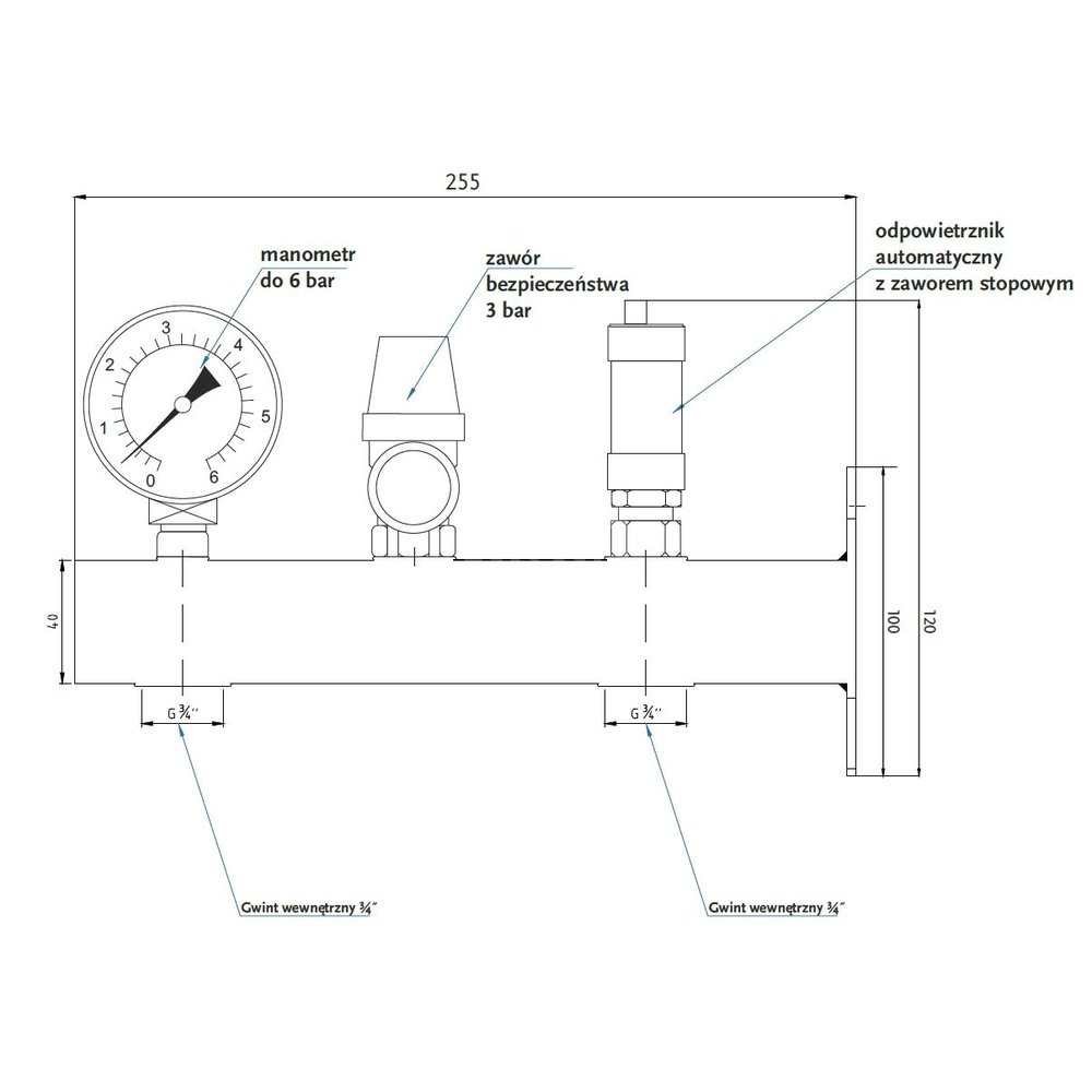 Materiał: stal konstrukcyjna, niestopowa. Konstrukcja: 40 x 40 x 2,0. Przeznaczenie - przyłączenie naczynia wzbiorczego w instalacjach centralnego ogrzewania. Temperatura pracy: 95 st.C. Ciśnienie pracy: do 0,3 MPa.