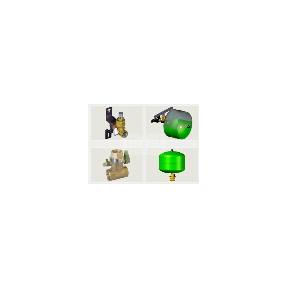 W skład armatur 7500 wchodzi zawór "antylegionella", zawór trójdrogowy (ustawienia: praca, odcięcie/opróżnienie naczynia), króciec (DN20) lub kurek spustowy (DN32). Wykonania DN20 mają w komplecie uchwyt ścienny.