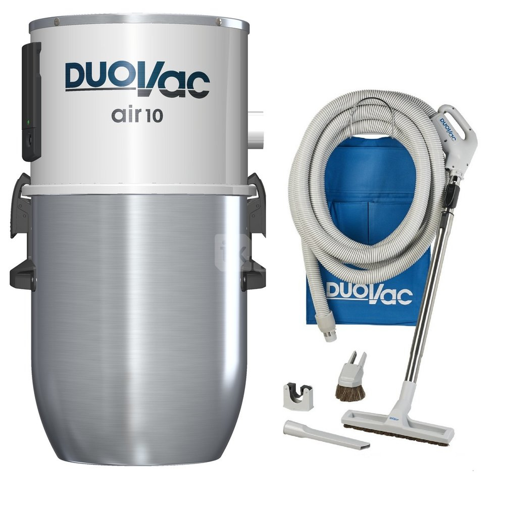 Odkurzacz centralny Duovac Air10 przeznaczony jest do domów o max. powierzchni ok 250m² wraz z instalacją składającą się z max. 7 punktów ssących. Mimo swoich kompaktowych wymiarów posiad duży, lekki i wygodny zbiornik na zanieczyszczenia oraz niezawodny silnik zapewniający optymalną siłę ssania podczas całego okresu użytkowania. Silnik został wyposażony w system łagodne uruchamiania SOFT-START, dzięki czemu wydłuża się jego żywotność.