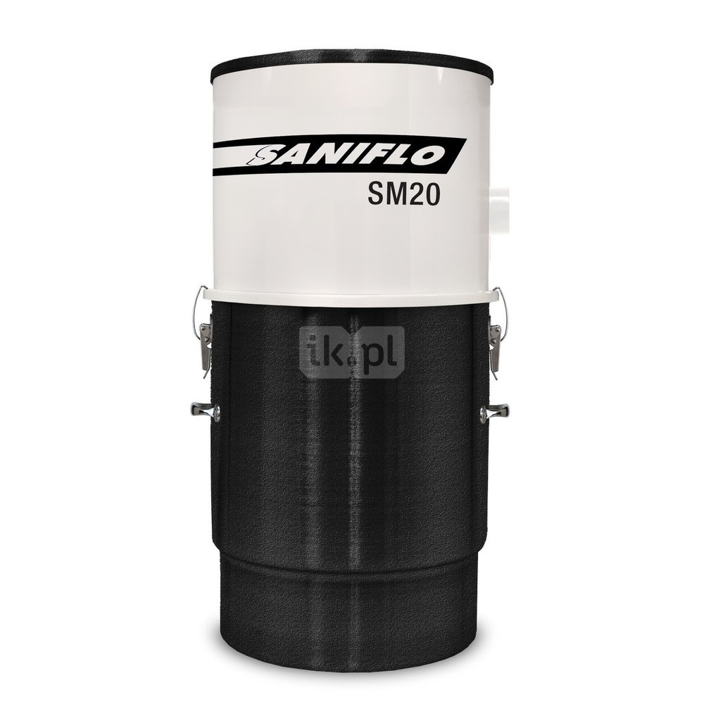 Jednostka centralna Saniflo SM20 polecana jest do domów o max powierzchni 250m2 wraz z instalacją składającą się z max 7 punktów ssących, Dzięki swoim kompaktowym wymiarom zmieści się nawet w małej kotłowni czy pomieszczeniu gospodarczym, a wydajny silnik zapewni optymalną siłę ssania podczas całego okresu użytkowania, Silnik wyposażony został w system łagodnego uruchamiania SOFT-START, dzięki czemu wydłuża się jego żywotność, Jednostka ta może pracować wraz z wielowarstwowym antyalergicznym workiem jednorazowym o poj, 15l, Zastąpienie zewnętrznego tłumika hałasu wewnętrznymi kanałami wyciszającymi sprawiło, że jednostka SANIFLO SM20 może zostać zamontowana blisko pomieszczeń mieszkalnych, a hałas podczas sprzątania nie będzie przeszkadzał innym domownikom, W przypadku braku możliwości wyprowadzenia wyrzutu powietrza na zewnątrz budynku, rura wylotowa może pozostać w pomieszczeniu, w którym znajduje się odkurzacz, Rozwiązanie to jest możliwe dzięki bardzo wydajnej podwójnej filtracji w jaką wyposażona została jednostka centralna SANIFLO SM20, W przypadku tym zaleca się jedynie zastosowanie dodatkowego filtra wylotu HEPA, który rozproszy nam powietrze wyrzucane przez jednostkę centralną oraz dodatkowo zmniejszy emitowany przez nią hałas o około 2dB, W skład zestawu wchodzą: