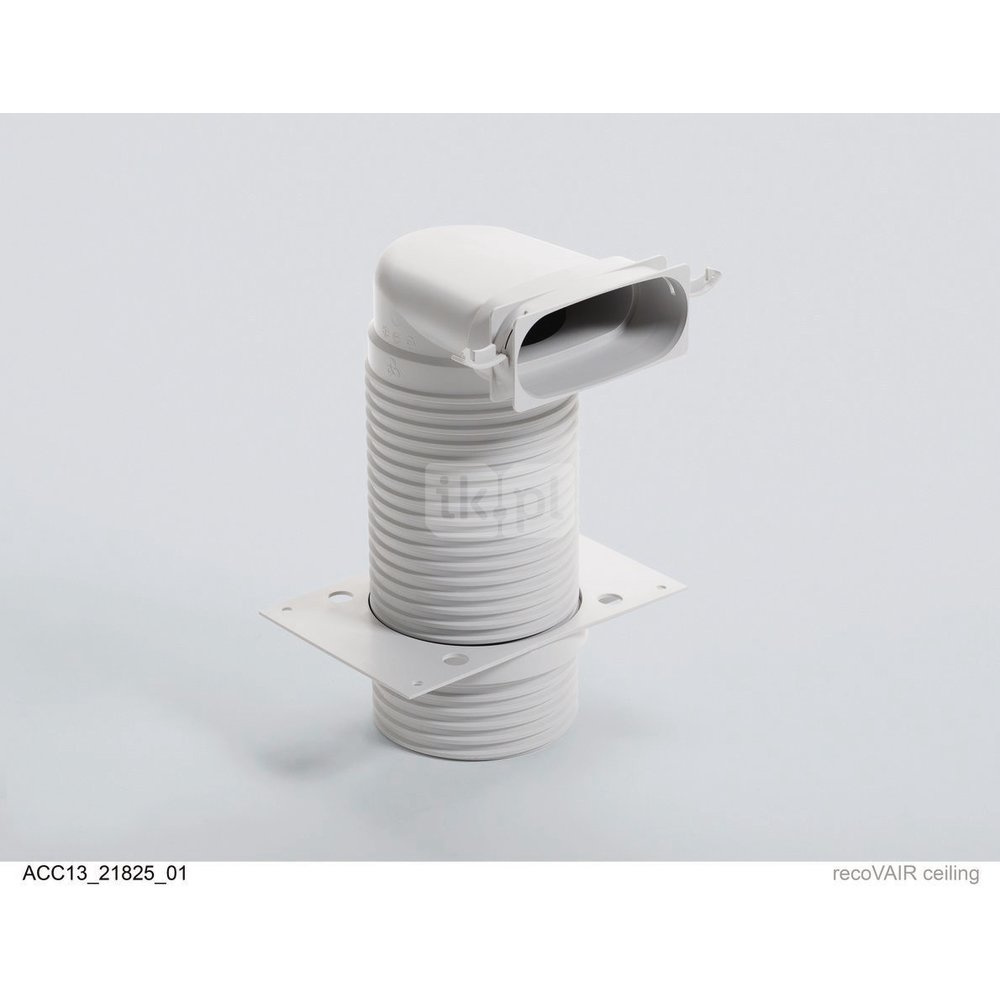 Przyłącze zaworu, kolanko 90°, Ø125 mm, na giętki przewód powietrzny, płaski, 52 x 132 mm z płytą montażową, uszczelki i kołpaki