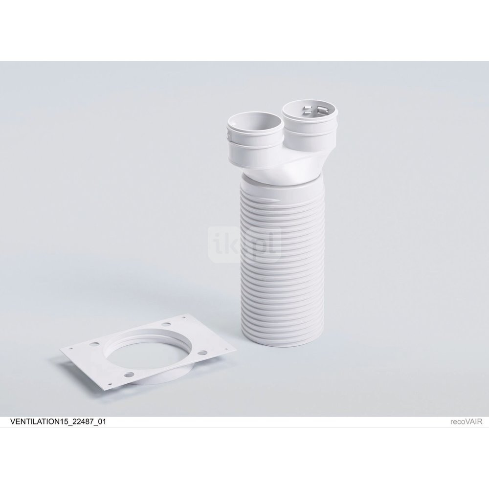 Przyłącze zaworu, proste, Ø125 mm, na dwa giętkie przewody powietrzne Ø75/62 mm z płytą montażową, uszczelki i kołpaki zamykając
