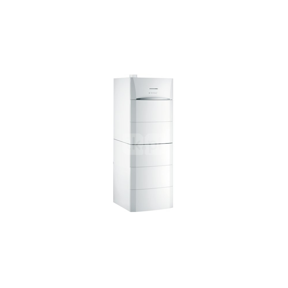 Kocioł w komplecie z podgrzewaczem c.w.u.  emaliowanym z wężownicą. Podgrzewacz umieszczony pod kotłem dla stworzenia „kolumny” o jednolitym wyglądzie. Ochrona antykorozyjna przy pomocy „Titan Active System” (anoda nie zużywająca się). Zawór spustowy, pętla cyrkulacji. Przewody połączeniowe kocioł-zasobnik i czujnik c.w.u. w zakresie dostawy, regulowane nóżki