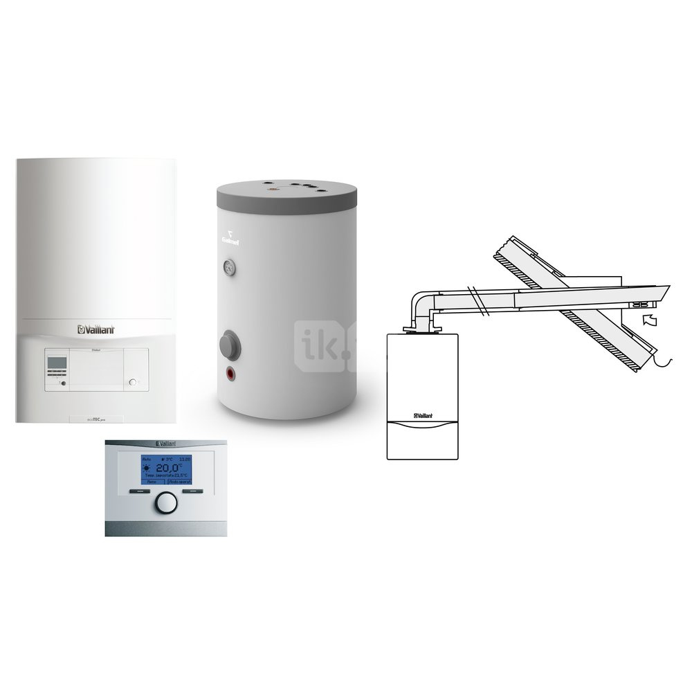 Pakiet - Kocioł gazowy jednofunkcyjny VAILLANT ecoTEC pro VC 146/5-3 kondensacyjny wiszący 5.9-15.3kW + Zestaw powietrzno-spalinowy + Czujnik c.w.u. + Regulator multiMATIC 700 + Zasobnik c.w.u Rondo Premium 140L