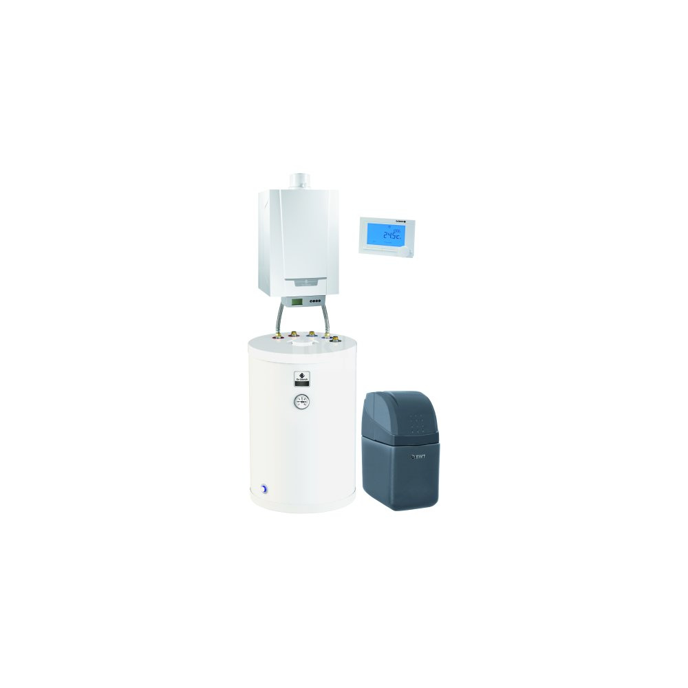 Zestawy pakietowe gazowych kotłów kondensacyjnych MCR3 evo z emaliowanymi podgrzewaczami c.w.u. o pojemności 100 lub 150 litrów ze zmiękczaczami do wody marki BWT. Do wyboru kocioł gazowy MCR3 PLUS 24T lub 35T. W zestawie dostępne zmiękczacze do wody AQA Perla Black marki BWT o pojemności 15 lub 20 litrów żywicy i przepływie maksymalnym ciągłym 2,1 lub 2,7 m3/h. Do wyboru pakiety z regulatorem iSense