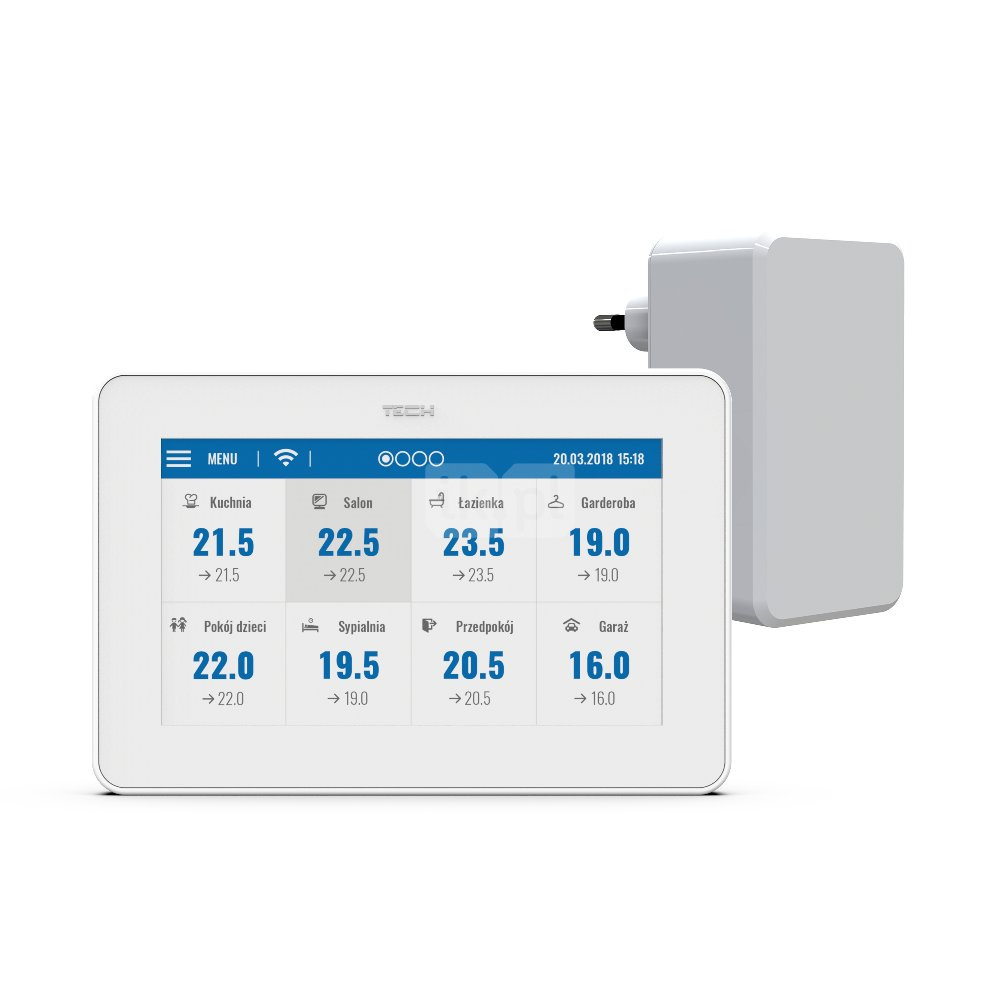 Czytelny, dotykowy panel umożliwia łatwe zarządzanie pracą podrzędnych urządzeń. Aby dokonać ustawień w podrzędnej sterownikowi strefie, wystarczy kliknąć obszar ekranu z informacją o jego stanie. Wygląd wyświetlacza panelu kontrolnego sterowników ogrzewania można dopasować do swoich potrzeb, korzystając z funkcji ustawienia ekranu. Można m.in. ustawić wygaszacz ekranu w postaci zegara albo daty. Dodatkowo użytkownik ma możliwość wyboru wersji kolorystycznej ekranu sterownika oraz włączenia lub wyłączenia dźwięku klawiszy.