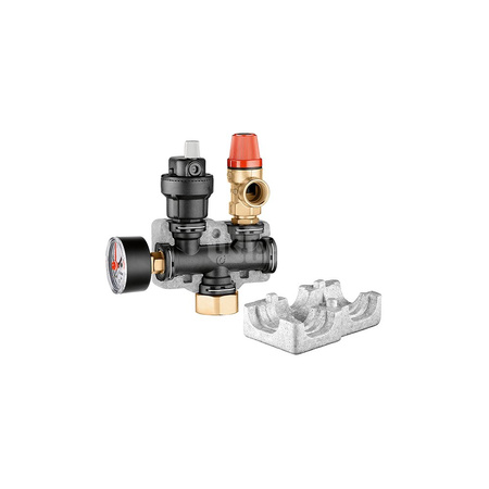 Wyposażona w zawór odpowietrzający, zawór bezpieczeństwa i manometr.