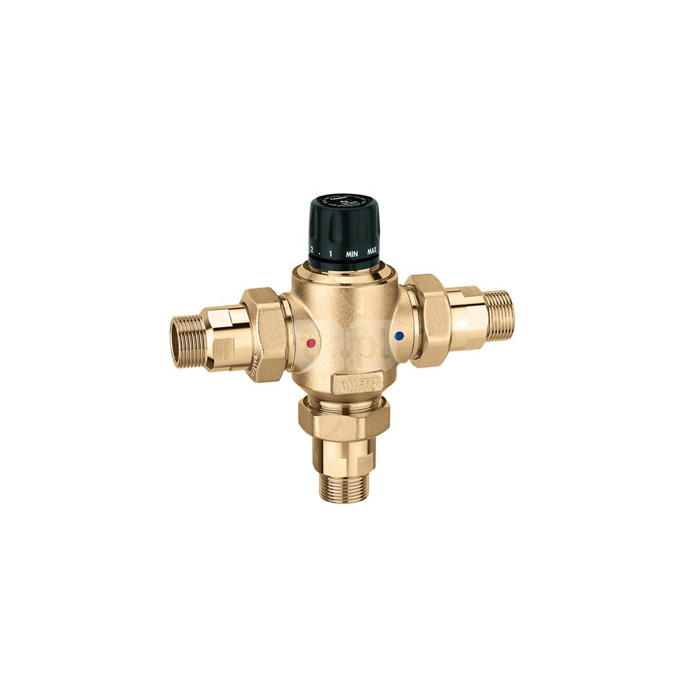 Regulowany termostatyczny zawór mieszający z wymiennym wkładem do systemów scentralizowanych. Z zaworami zwrotnymi 1/2"