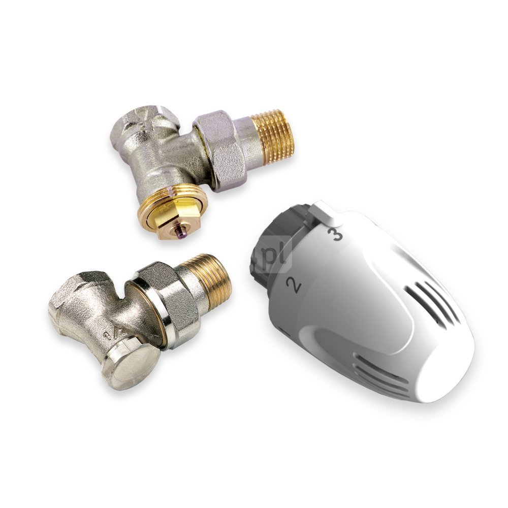 CONCEPT Pakiet termostatyczny kątowy (głowica termostatyczna M28x1,5 + zawór termostatyczny kątowy b/nastawy wstępnej + zawór powrotny kątowy)
