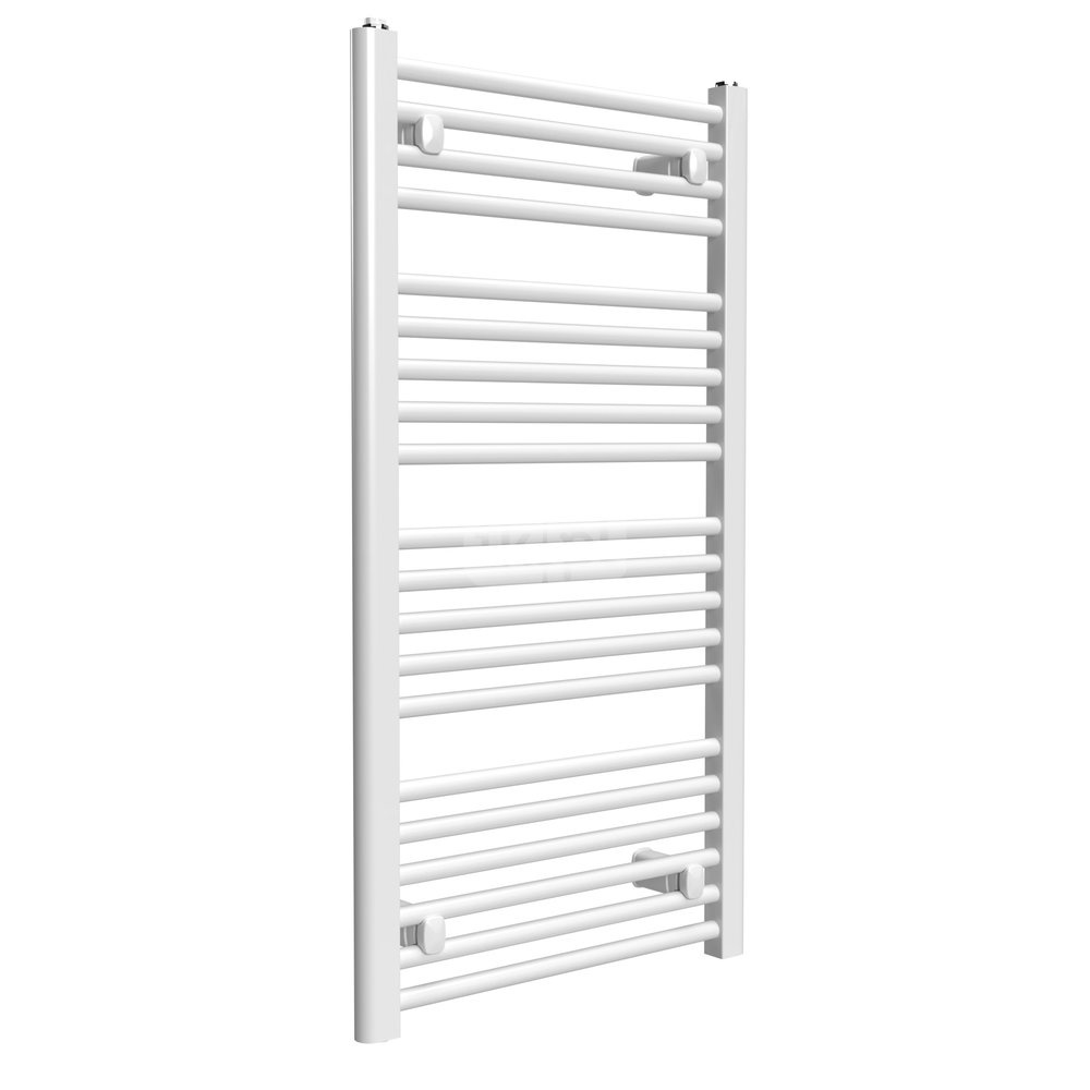 Grzejnik łazienkowy w kolorze białym. Typ: GRN - grzejnik pionowy łazienkowy. Materiał: stal niskowęglowa niestopowa. Konstrukcja: kolektor profil "D" 40 x 30, rury DN 20. Wysokość: 620, 740, 940, 1180, 1340, 1500, 1700, 1820 mm, szerokość: 400, 500, 600 mm. Ciśnienie robocze do 1,0 MPa. Temp. pracy do 95°C. Wyposażenie standardowe: korek 1/2", odpowietrznik 1/2", zawieszenie grzejnikowe typ Z 13. Wykończenie powierzchni: kolor biały. Przyłącza 1/2" GW.