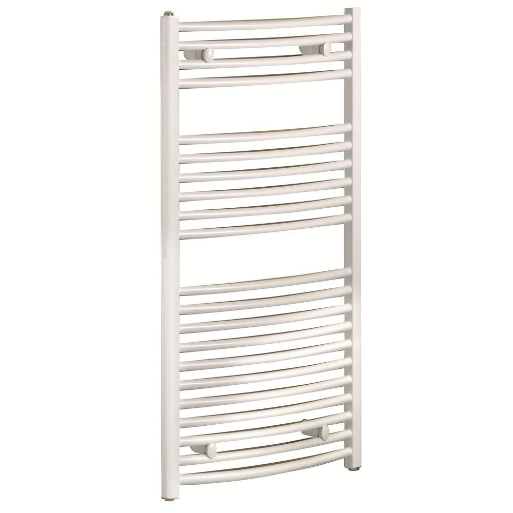 Grzejnik drabinkowy stalowy o poprzeczkach wyprofilowanych łukowo. Kolektory wykonane z profili o kształcie litery D. Rurki poziome o przekroju 24 mm. Moc podana dla parametrów 75/65/20°C.