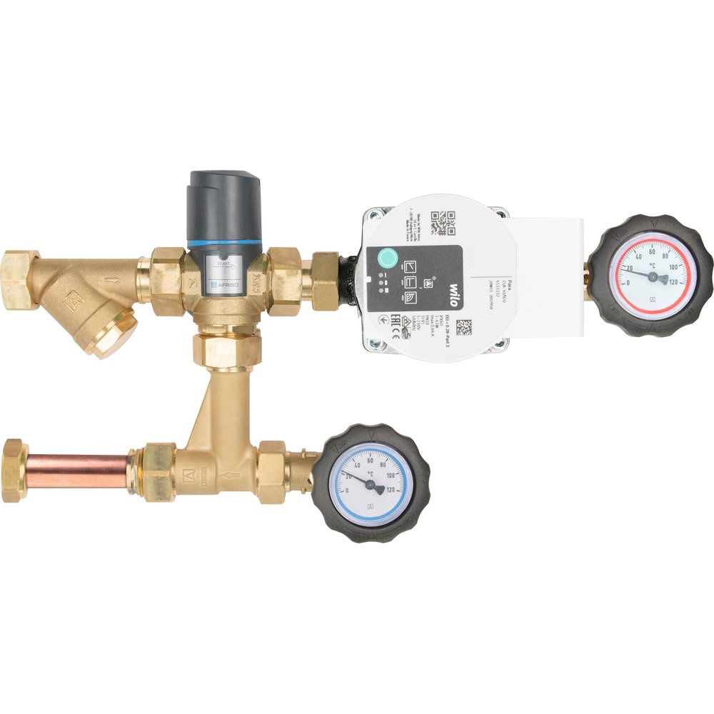 • Wyposażona w niezbędną armaturę: filtr siatkowy, zawory odcinające, trójnik z wbudowanym zaworem zwrotnym na powrocie oraz termometry.